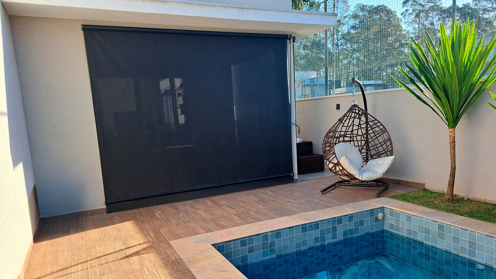 O tecido screen é especialmente projetado para bloquear os raios UV, reduzir o calor e manter o ambiente fresco devido aos microfuros existentes, além de permitir a visibilidade da área externa. Isso a torna ideal para espaços onde a luz do dia é desejada, mas o calor intenso não é.